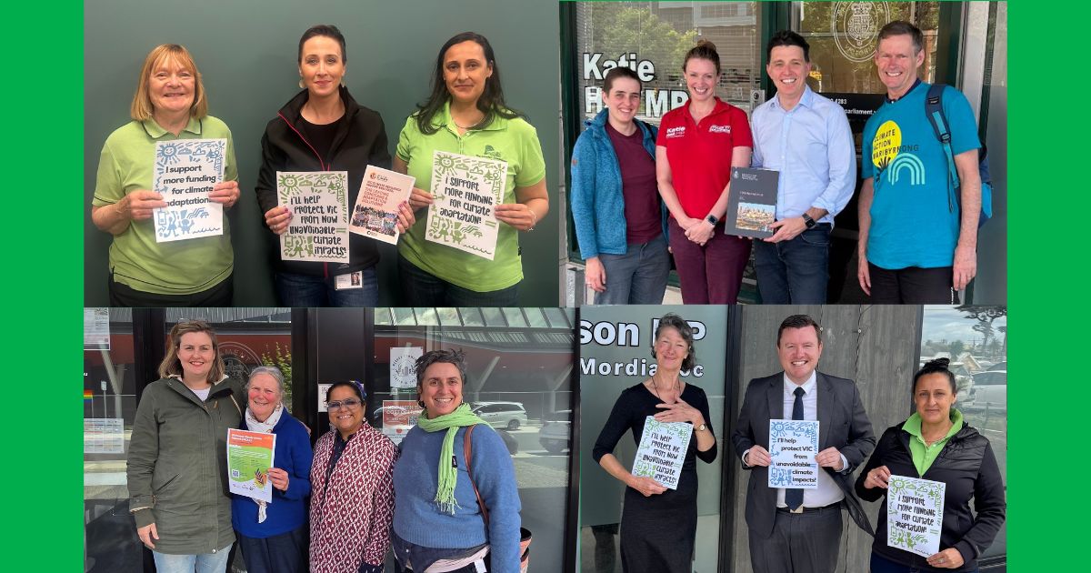 Even More MPs Asked to Act on AdaptationCommunity members and local orgs are continuing to meet with their state MPs to ask them to back more funding of climate adaptation! Thank you to those who took the time to meet with their MPS and to these MPs for taking the time to listen to their constituents' concerns for taking these concerns to Parliament. In October and November: Keen to meet with your MP? Reply for more info! Or email them using this pre-filled email. |