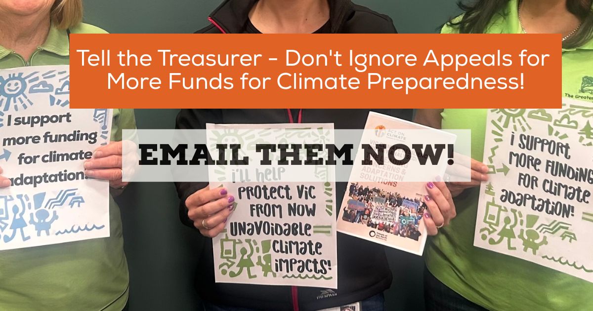 Tell the Treasurer don't dismiss Victorians’ appeal for more funding to prepare for climate impacts and to adequately fund adaptation in this year’s Vic state budget through a Victorian Community Climate Adaptation Fund.