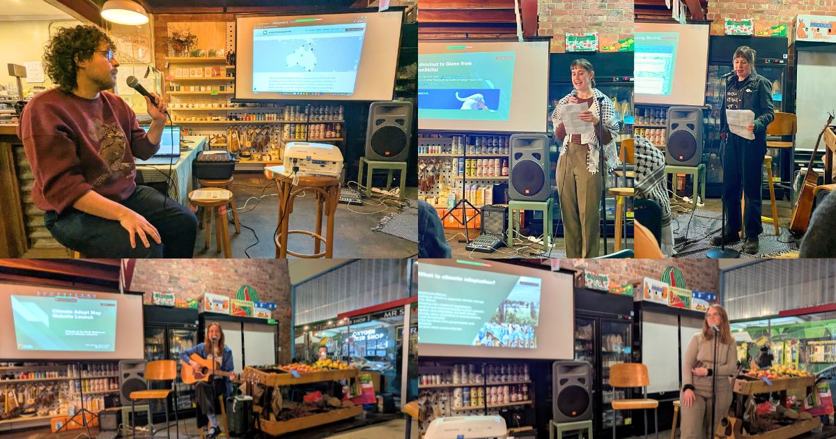 On Thursday, 31st July, the Act on Climate collective launched the Australia Climate Adaptation Map website! We gathered on Wurundjeri country to celebrate the site launch and showcase climate adaptation initiatives underway in communities across Australia.