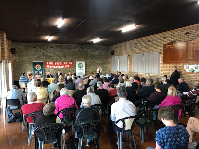Over 100 community members, workers and business people gathered to hear sitting MPs and major party candidates present their vision and policies on renewable energy and climate change.
