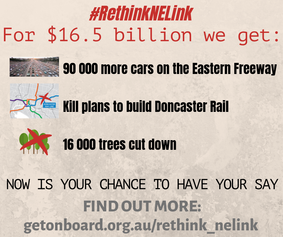 The project is putting 90 000 more cars on the Eastern Freeway, killing any plan to build Doncaster Rail and expecting to cut down 16 000 trees.
