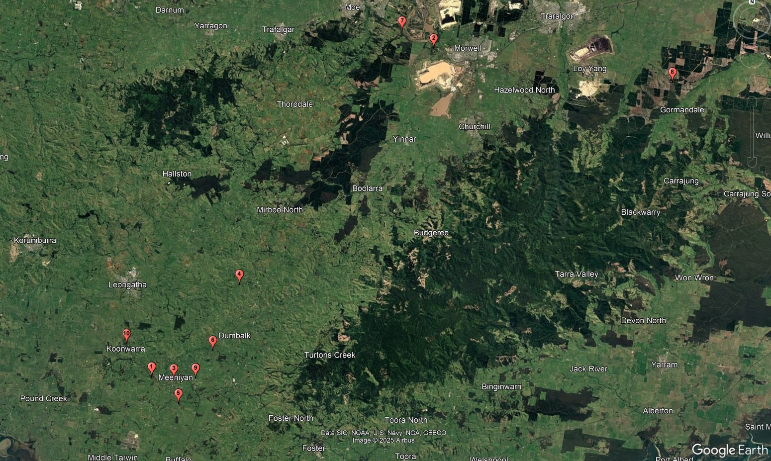 Intersection of Lower Tarwin Road and South Gippsland Highway Tarwin. This intersection is about 2.5km west of Meeniyan. South of the intersection is the Tarwin Bushland Reserve and north is native vegetation linked to the Great Southern Rail Trail. Surveys in 2016 by Anthony Amis revealed high numbers of scats in both areas.